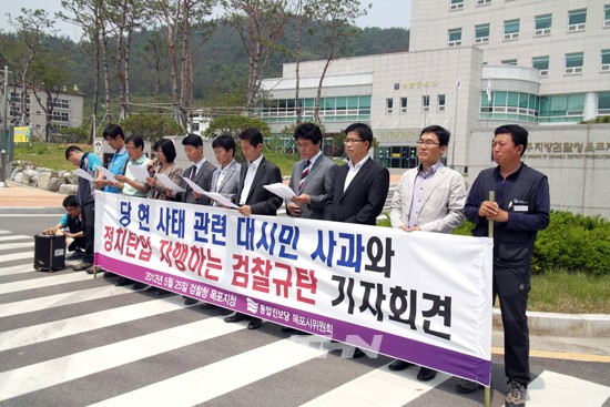 또 기자회견문을 통해 "지난 5월 23일 검찰은 헌정사상 유례를 찾아볼 수 없는 폭거가 자행되었다"며 "비례선거부정의혹에 대한 당 차원의 자정노력을 진행하고 있는 시기에 정치검찰이 개입해당에 있는 선거관련자료 일체를 압수 조사하겠다는 것은 헌법상에 보장된 정당 정치활동의 기본권을 침해하는 행위다"고 설명했다.