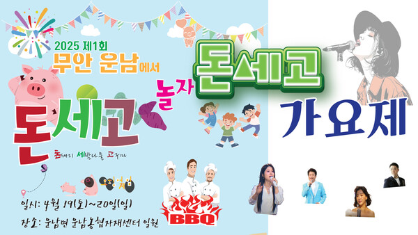 전남 무안군 운남면 일원에서 제1회 돈세고 놀자 행사가 진행된다. 지역 농특산물의 우수성을 알리고 경제 활성화를 위한 이번 축제는 오는 4월 19일(토)부터 20일(일) 2일 간 진행된다.