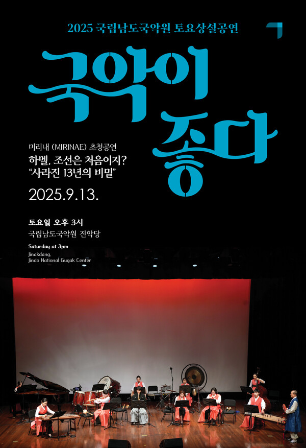 [통합뉴스 김영근 기자] 국립남도국악원은 9월 13일 토요일 오후 3시, 미리내 초청공연 <하멜, 조선은 처음이지?>를 선보인다.